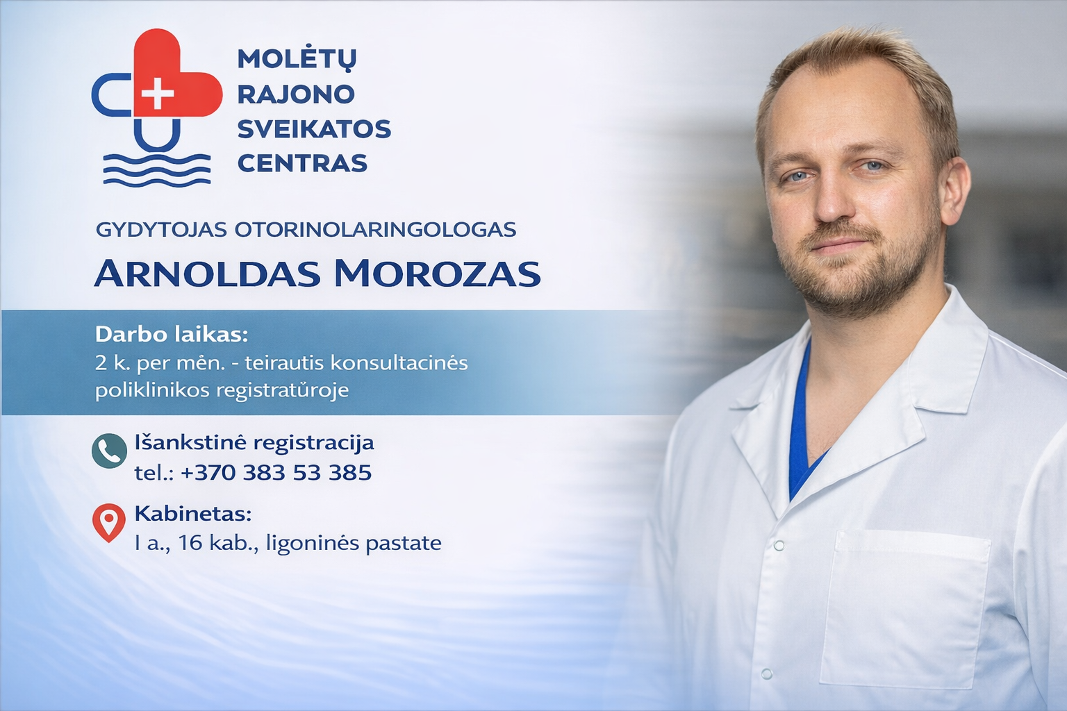 Susipažinkime su mūsų komandos nariu – Molėtų rajono sveikatos centro gydytoju otorinolaringologu Arnoldu Morozu.