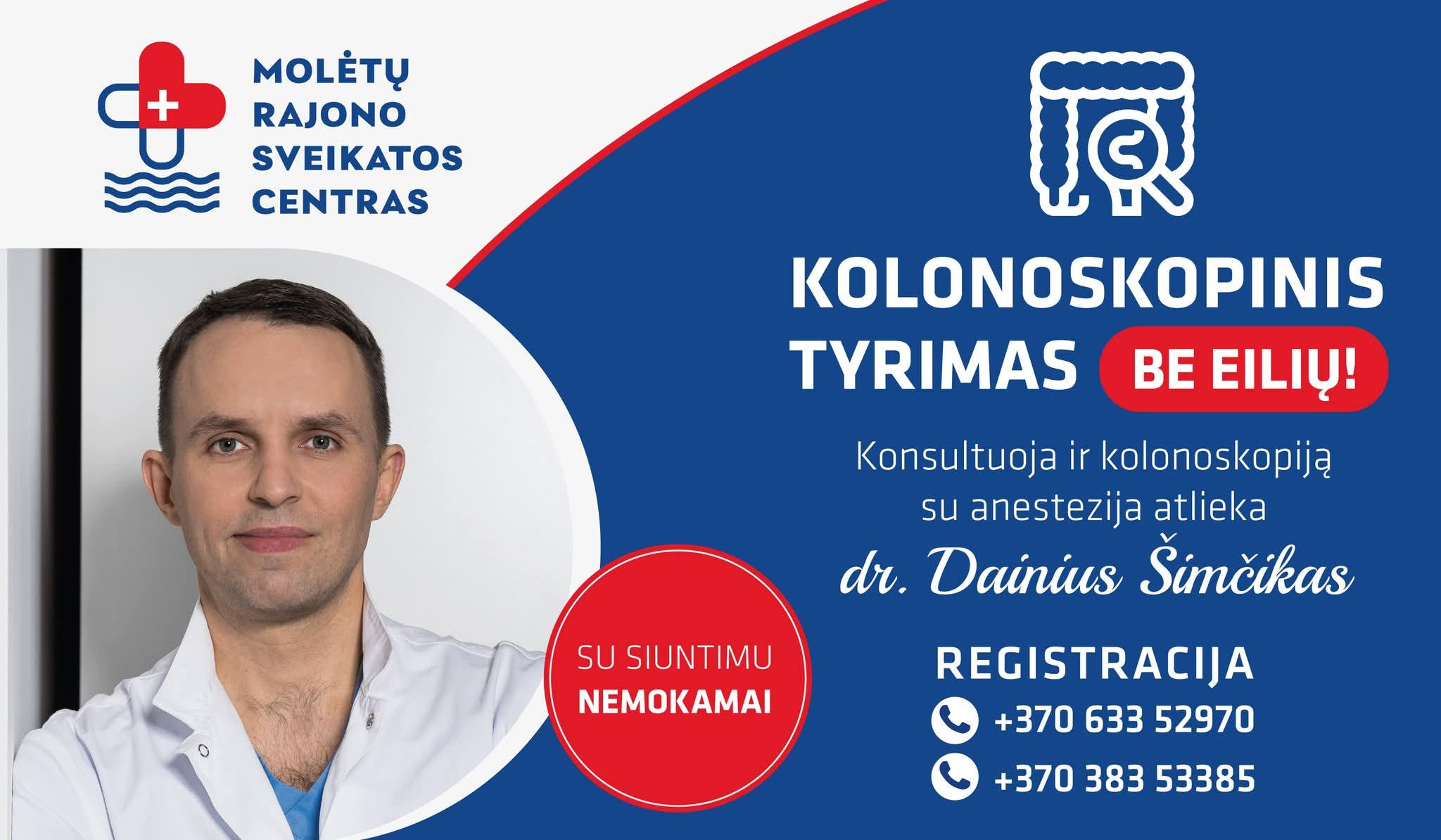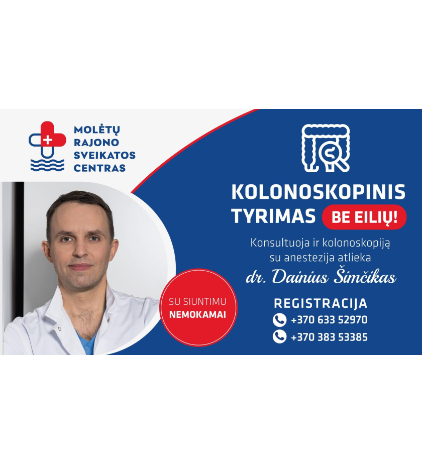 Molėtų rajono sveikatos centre, vasaros pradžioje, darbus pradėjo gydytojas koloproktologas, chirurgas Dainius Šimčikas. Todėl, nuo šiol konsultacijos teikiamos ir kolonoskopija su anestezija atliekami Molėtuose!