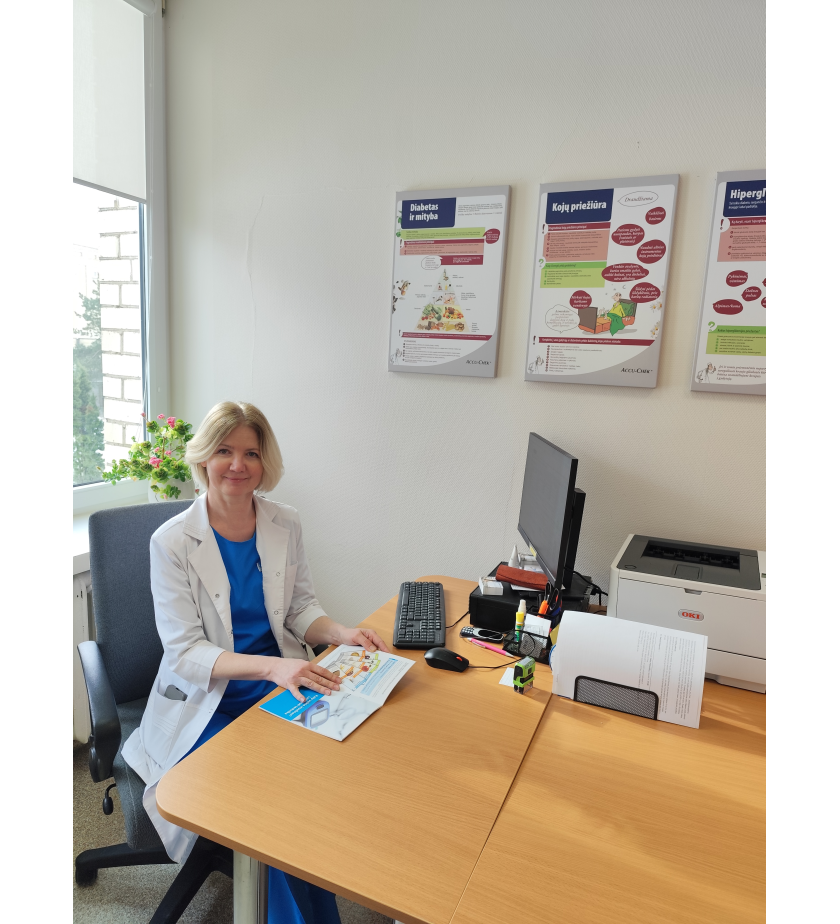 Slaugytojo diabetologo kabinetas yra III aukšte, 30 kab. Kabinete dirba slaugytoja diabetologė Neringa Jurkūnienė, tel.: +370 645 49012